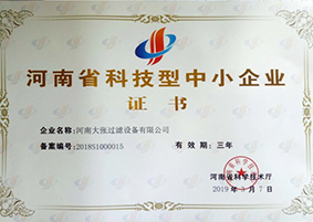 2020年9月9日——河南大張過(guò)濾設(shè)備有限公司榮獲“高新技術(shù)企業(yè)”證書(shū)